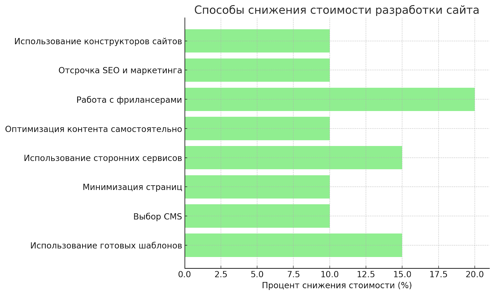 Вот диаграмма о способах снижения стоимости разработки сайта в Москве: